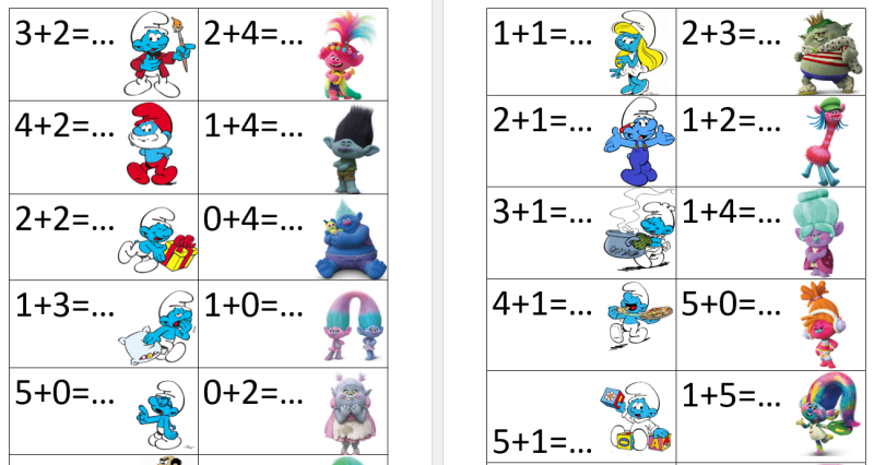Op de gang gaan jullie bladeren zien hangen met daarop rekensommen. Je kijkt dus naar het prentje die staat op het blad en dan vul je bij dat prentje het juiste antwoord in.