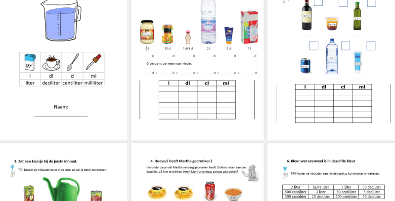 Iedereen krijgt een blaadje met daarop een hoeveelheid (inhoud). Er is een binnen- en buitencirkel. Als ik fluit tonen jullie je kaartje aan elkaar. Fluit ik 2 keer dan schuif je door.